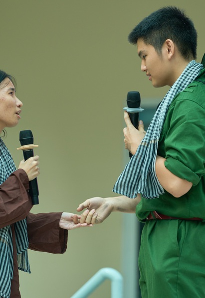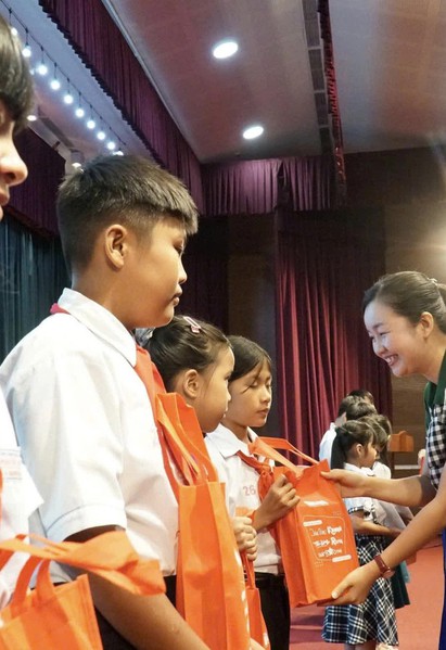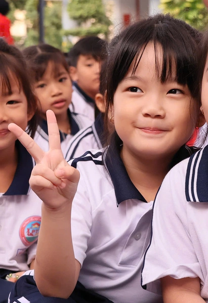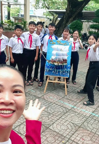 Báo tường hình con thuyền do học sinh trường THCS Phước Thắng (phường Phước Thắng) thực hiện thu hút sự quan tâm của mọi người vì quá độc đáo, công phu.