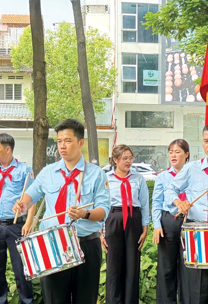 Không chỉ đồng diễn Việt phục qua các tuyến đường ở TP.HCM, năm nay Ngày hội Việt phục Tóc Xanh Vạt Áo còn có hoạt động nhảy flashmob trên nền ca khúc Nhà tôi có treo một lá cờ.