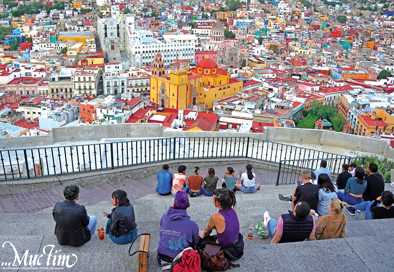 Người dân và du khách ngắm toàn cảnh thành phố di sản Guanajuato - Ảnh: NGUYỄN HOÀNG BẢO