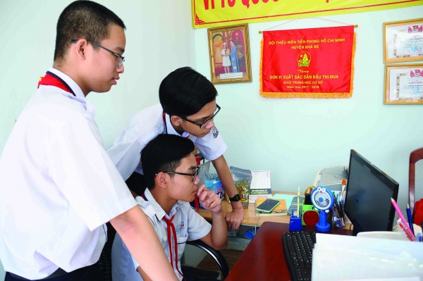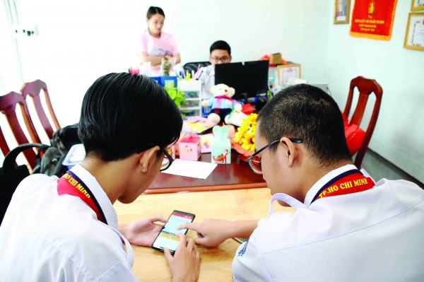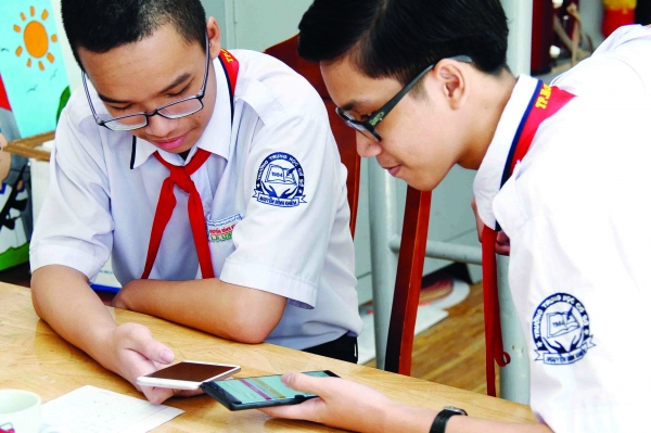 Bạn Hồ Minh Nhật vui mừng: “Lúc làm ai cũng háo hức, cứ gỡ được một điểm nghẽn là cả nhóm lại càng háo hức hơn. Thứ 7, chủ nhật là những ngày cao điểm để tụi mình cùng làm đến khuya. Có bạn đi học thêm về là nhào vô máy tính trực tuyến liền. Điều thích nhất là tụi mình có thể làm việc cùng nhau mọi lúc mọi nơi với chiếc điện thoại kết nối wifi hay bằng máy PC tại nhà, trong trường”. Có những hôm xài ké sóng wifi mà yếu quá thì cứ lúc kết nối là chạy ra chạy vô gần quán nước, trường học nhìn rất buồn cười. Lập trình phần mềm mà mồ hôi lưng, mặt nhễ nhại… Cần cù, vượt khó và luôn sáng tạo trong gần 2 tháng ròng rã, app mang tên Trắc nghiệm nhân vật lịch sử