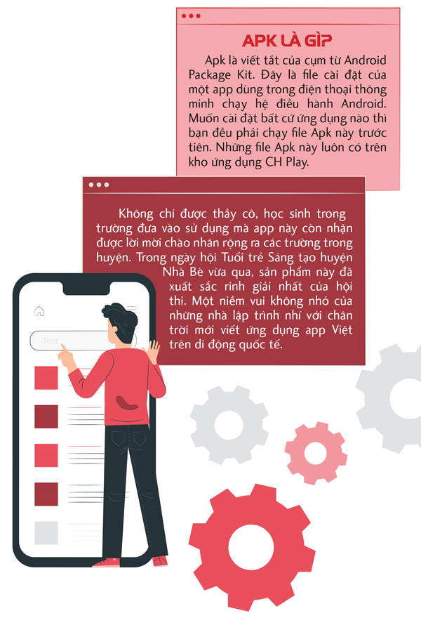 Lắm lúc, thầy cô và bạn bè thấy các bạn hay xem YouTuber cứ tưởng cả nhóm đang giải trí không lo tập trung làm app. Thật nhiều ánh mắt tròn dẹt nghi ngờ. Truy tìm tài liệu, các bước để dần dần viết nên một Apk hoàn chỉnh, các bạn đã từng bước giải quyết khó khăn trong từng khâu lập trình app. Ngôn ngữ thì dùng app Inventor, dữ liệu lịch sử thì lấy từ nguồn chính thống hay ngay trong sách vở mà mình đang học. Các bạn đã sáng tạo khi chọn chức năng nhúng file, hay gắn đường dẫn vào phần thân Apk để dung lượng app nhẹ đi rất nhiều.