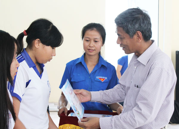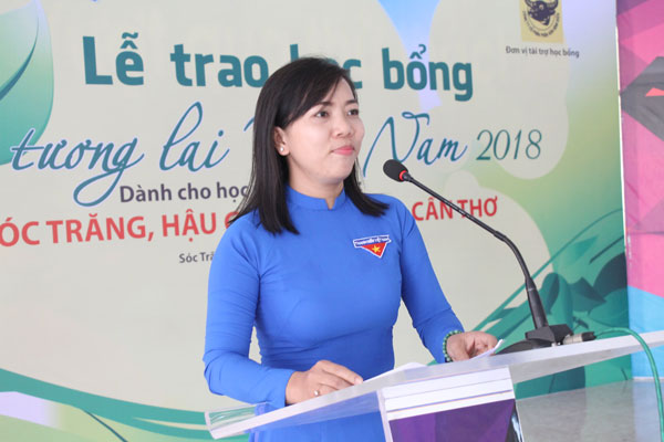 Chị Võ Kim Chuyền, Bí thư Tỉnh Đoàn Sóc Trăng tặng học bổng cho teen