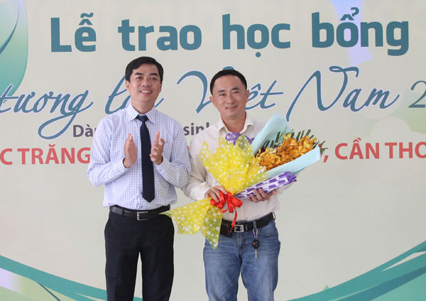 Chú Lâm Văn Mẫn trao học bổng cho teen