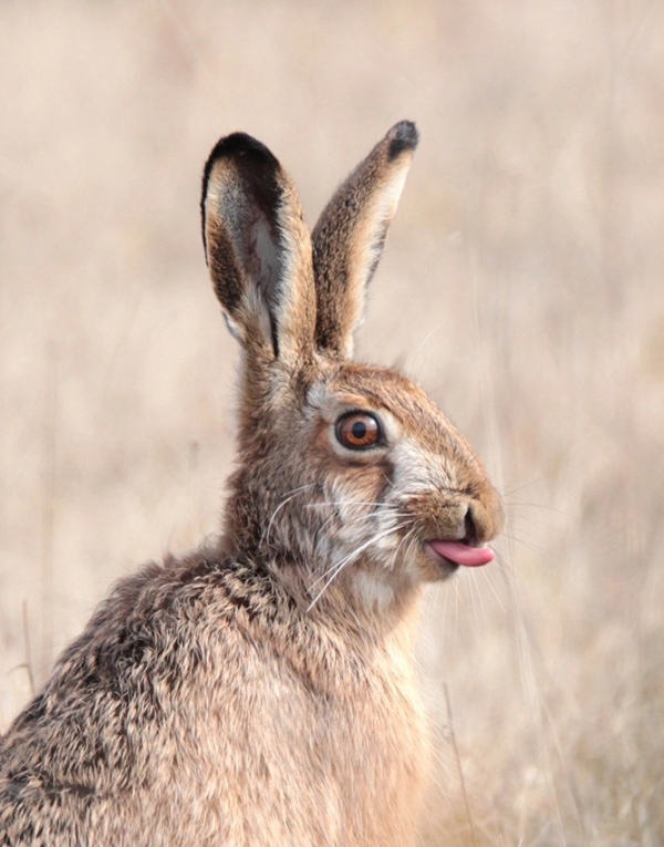 Tác phẩm Little Kiss chụp bởi Cristo Pihlamäe (Estonia). Bức ảnh chụp một chú thỏ rừng đang nhìn ra cánh đồng với chiếc lưỡi thè ra.