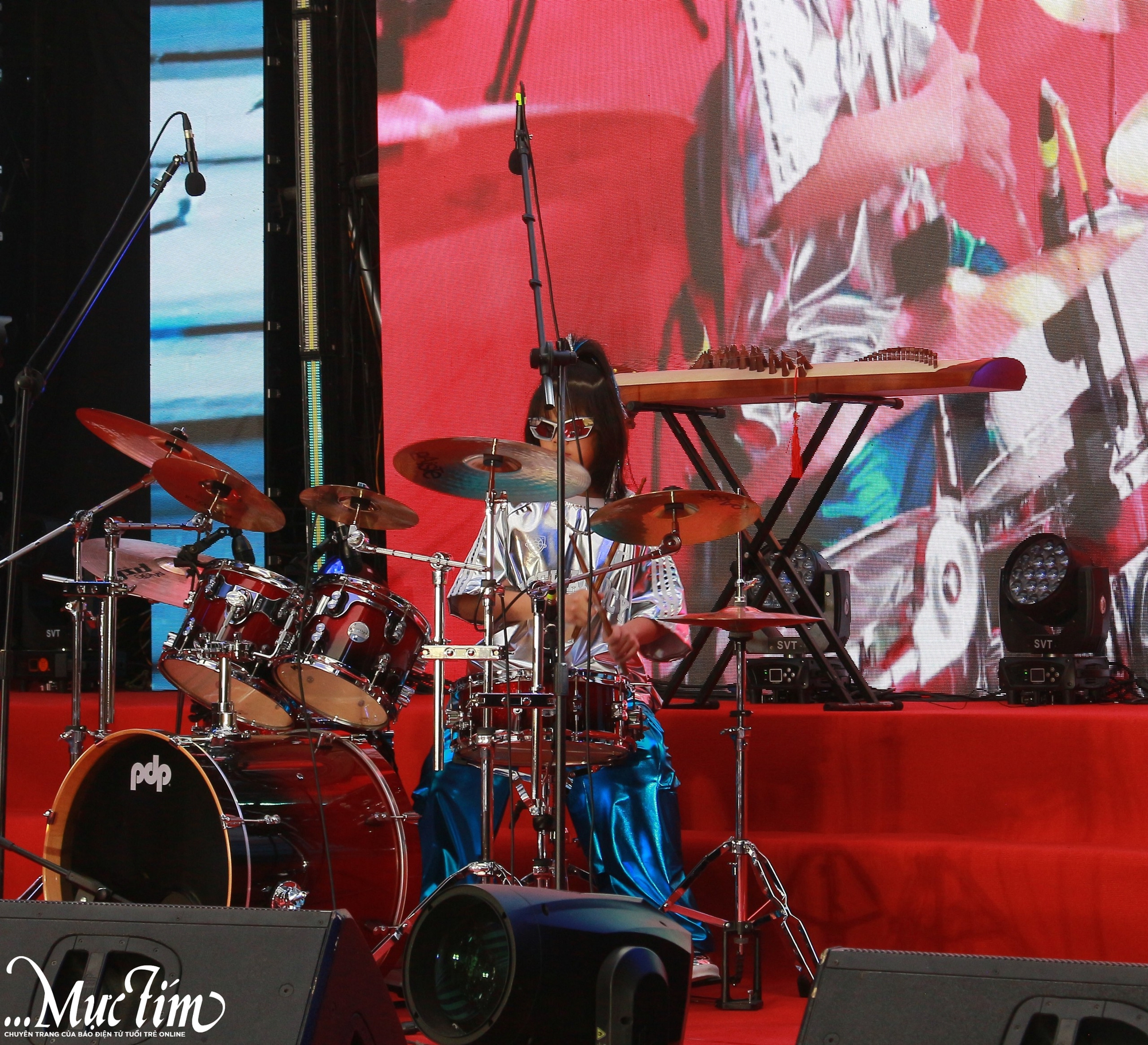 Tiết mục tài năng trống Jazz của Lê Hoàng Bảo Bảo (lớp 5/1) - Ảnh: DUY DƯƠNG