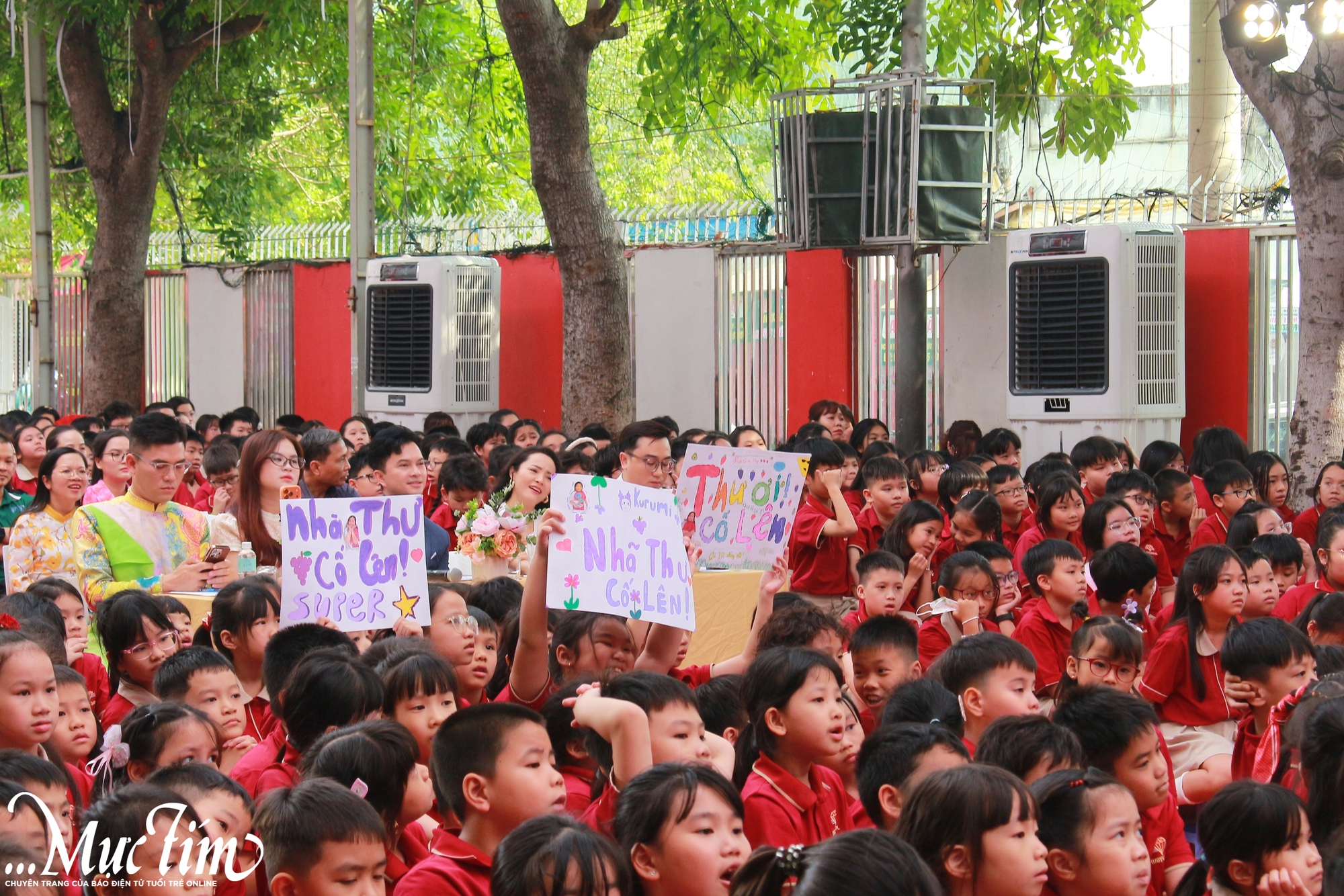 Nhiều bảng cổ vũ dành cho tiết mục của Nhã Thư (lớp 3/2) - Ảnh: DUY DƯƠNG