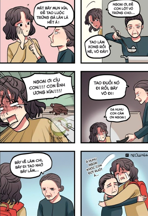 Ở Cháo Hành Miễn Phí, có bạn chia sẻ câu chuyện nghỉ học tránh dịch nên về quê được bà chăm sóc từng li từng tí. Thấy bạn bị lên mụn, bà liền luộc trứng, tỉ mỉ bóc vỏ rồi lăn lên mặt cho. Ngày bạn rời quê lên thành phố, bà ôm bạn mà rưng rưng nước mắt: “Bây không về thì tao buồn, mà bây đi thì tao lại nhớ”. Chỉ là các chi tiết giản dị vậy thôi mà đã khiến bao bạn trẻ hồi tưởng lại những kỉ niệm thân thương với ông bà.