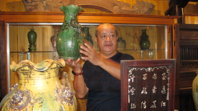 Bước vào ngôi nhà chứa đầy đồ cổ của ông Xênh, những chiếc bình cổ có tuổi đời hàng trăm năm về trước được trưng bày trước mắt người xem. Gian nhà đầu ông dành để trưng bày đồ gốm Mỹ Thiện ở quê hương ông. Gian thứ 2, ông dành trưng bày hiện vật cổ của con tàu Ai Cập bị đắm cách đây hơn 1000 năm ở xã Bình Châu. Khi hỏi về nguồn gốc của bộ sưu tập đồ cổ này, ông Xênh kể rằng: vốn xuất thân từ gia đình có ba đời hành nghề y học cổ truyền, nên ông có quan hệ mật thiết với ngư dân Quảng Ngãi. Mỗi chuyến ra khơi họ thường đến nhà ông mua vài vị thuốc để bồi bổ sức khỏe. Sau những chuyến ra khơi, người dân phát hiện ra cổ vật và mang đến dành tặng cho ông. Tới nay ông đã mất 20 năm để lặn lội từng nơi thu mua và bổ sung vào bộ sưu tập, cho đến nay ông Xênh đã có hàng nghìn hiện vật gốm vỡ có chất liệu men, hoa văn, niên đại theo từng giai đoạn lịch sử.