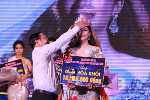 TS Nguyễn Văn Quang – Phó Hiệu trưởng Nhà trường trao băng đeo giấy chứng nhận, hoa và giải thưởng cho Á khôi I “DNC