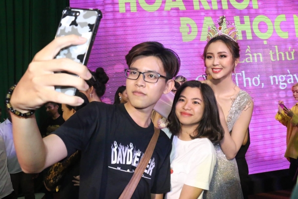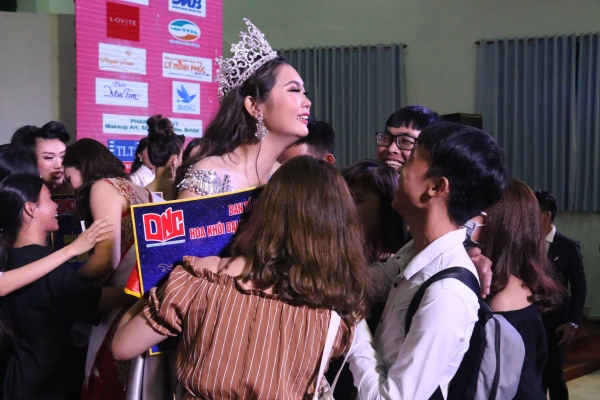 Rất nhiều bạn học chung trường đến chia vui cho tân Hoa khôi của trường mình