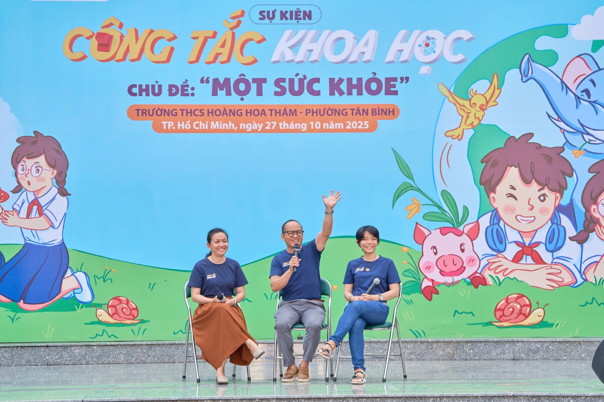 Chiều 27-10, dự án Công tắc khoa học với chủ đề "Một sức khỏe" đã khai mạc tại Trường THCS Hoàng Hoa Thám (phường Tân Bình, TP.HCM), mở đầu cho chuỗi hoạt động khoa học sáng tạo và ý nghĩa dành cho học sinh THCS.