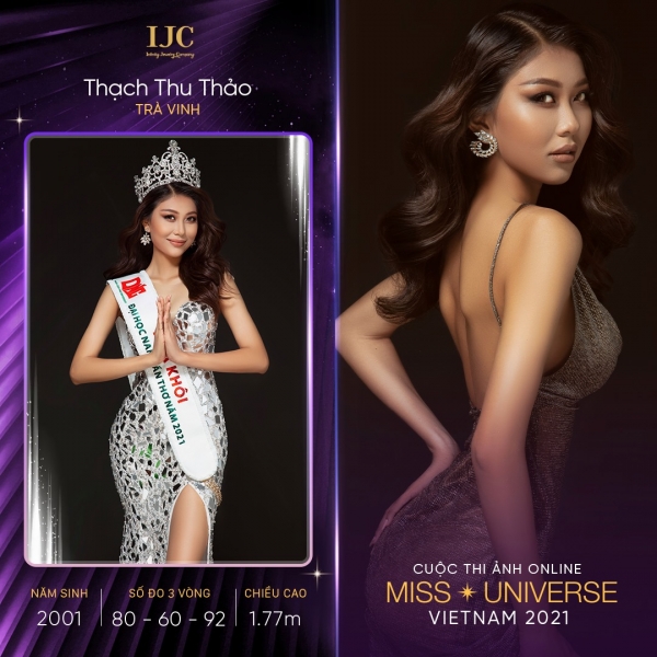 Thí sinh Thạch Thu Thảo, sinh năm 2001 là người đẹp đến từ Trà Vinh. Cô chính là Hoa khôi Đại học Nam Cần Thơ 2021, vừa đăng quang cách đây không lâu. Với chiều cao 1m77, số đo hình thể 80-60-92, Thạch Thu Thảo được nhiều khán giả đánh giá là gương mặt tiềm năng tại các cuộc thi sắc đẹp. Vốn là người dân tộc Khmer, Thạch Thu Thảo hi vọng: “Tôi muốn dùng những hành động tiếng nói của mình để người phụ nữ của dân tộc tôi sẽ mạnh mẽ vươn lên trên cuộc sống. Và tôi tin rằng với một trái tim ấm áp và sự tự tin tôi có thể lan tỏa những điều tốt đẹp đến với mọi người”. Cuộc thi ảnh online Hoa hậu Hoàn vũ Việt Nam 2021 vẫn tiếp tục nhận hồ sơ thí sinh cho đến hết ngày 31/08/2021.