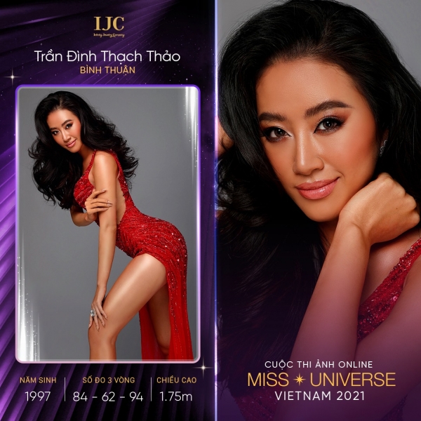 Đến từ Bình Thuận là thí sinh Trần Đình Thạch Thảo, sinh năm 1997. Cô sở hữu loạt thành tích đáng ngưỡng mộ ở các cuộc thi sắc đẹp như: Top 10 Miss world Vietnam 2019, Á khôi 2 Miss Photo 2017. Những kinh nghiệm từ việc tham gia các cuộc thi sắc đẹp đã rèn luyện Thạch Thảo từ một người nhút nhát trở thành cô gái tự tin, độc lập hơn. Khi biết chủ đề cuộc thi Hoa hậu Hoàn vũ Việt Nam năm nay là VINAWOMAN, Thạch Thảo biết rằng đây chính là thời điểm để cô khẳng định sự lột xác của bản thân.