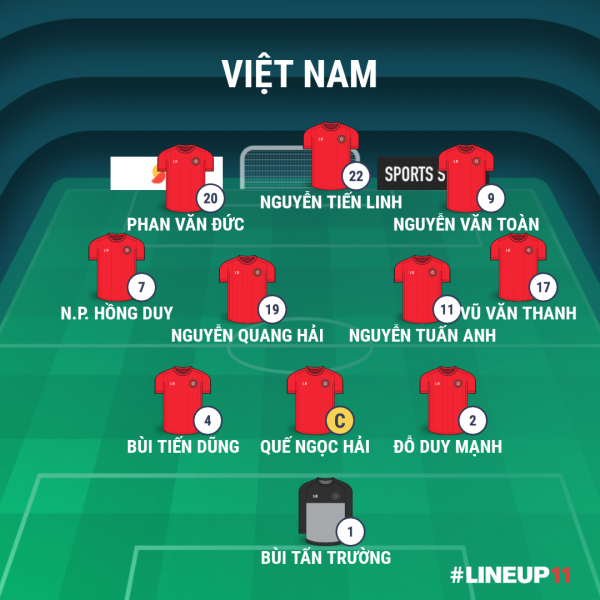 Hơn một giờ trước khi trận đấu với Indonesia tại vòng loại World Cup 2022, đội hình thi đấu của đội tuyển Việt Nam đã được hé lộ. Trấn giữ khung thành thủ môn kì cựu Tấn Trường. Hàng hậu vệ gồm Quế Ngọc Hải, Bùi Tấn Dũng và Đỗ Duy Mạnh. Hành lang hai cánh thuộc về Vũ Văn Thanh và Nguyễn Phong Hồng Duy. Đá cặp cùng Nguyễn Tuấn Anh ở trung tâm hàng tiền vệ là Nguyễn Quang Hải. Nguyễn Văn Toàn và Phan Văn Đức cùng với Nguyễn Tiến Linh là những người lĩnh xướng hàng công.