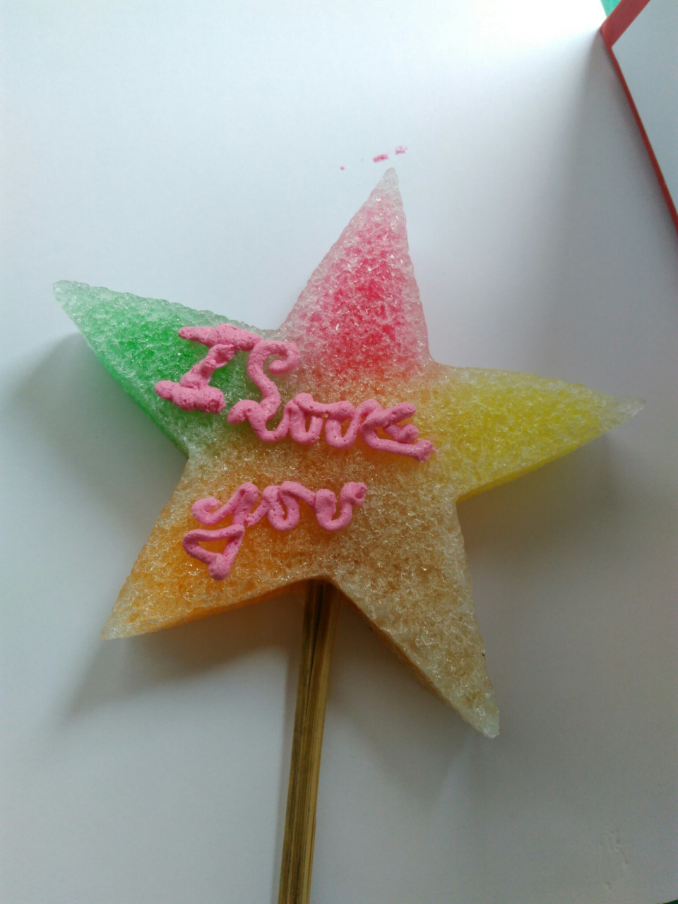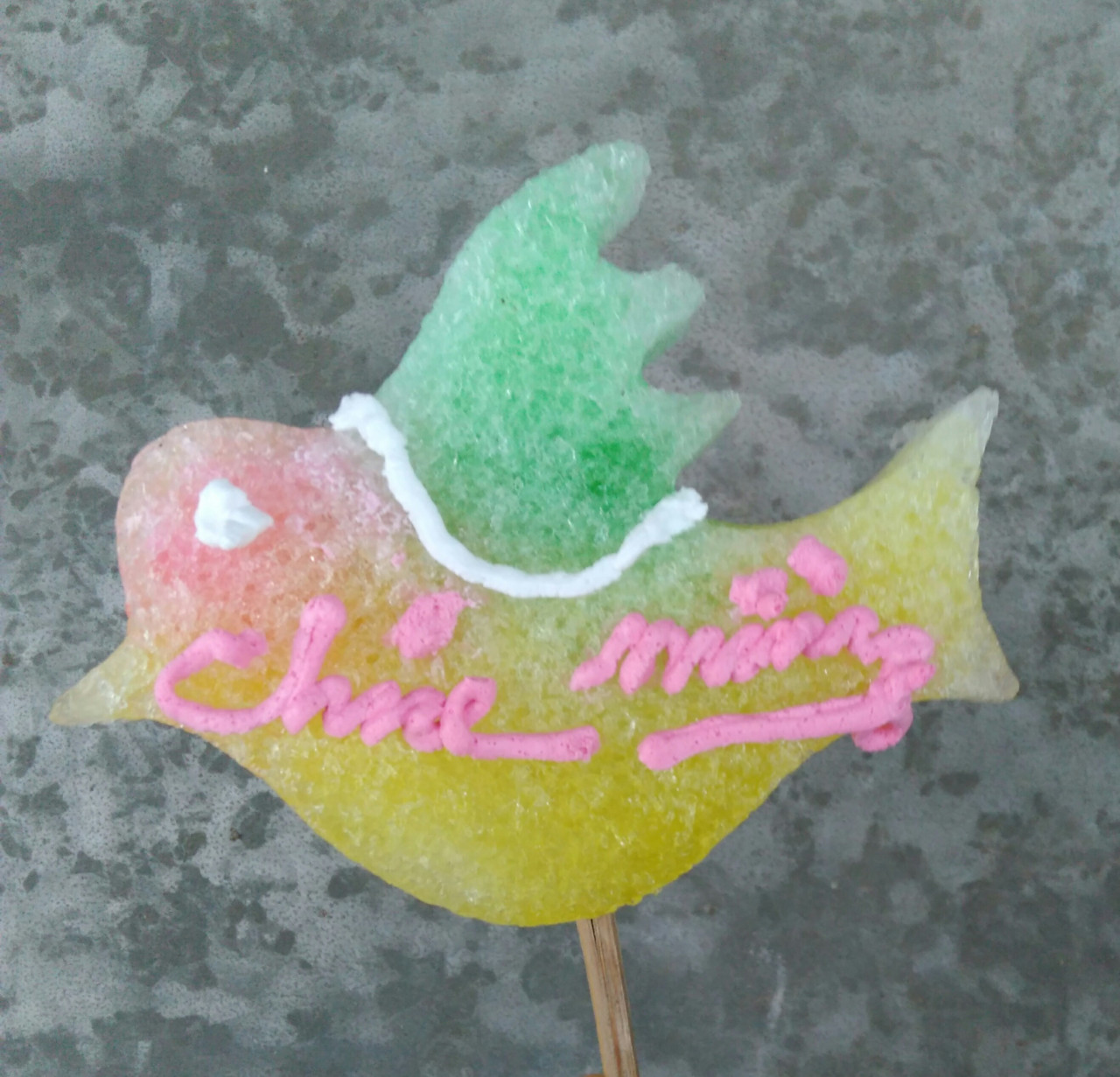 Những hình con vật, ngôi sao đó được cậu bạn tỉ mỉ rót siro kết hợp nhiều màu sinh động, những “sinh vật” như “khoác” lên mình chiếc áo choàng làm từ “cầu vồng” vô cùng xinh xắn, đáng yêu. Hòa tâm sự đây là sáng tạo của hai cha con, được các em nhỏ và các bạn teen rất thích, đặc biệt những que đá bào này mà chụp hình để sống ảo thì “hết xẩy” luôn!