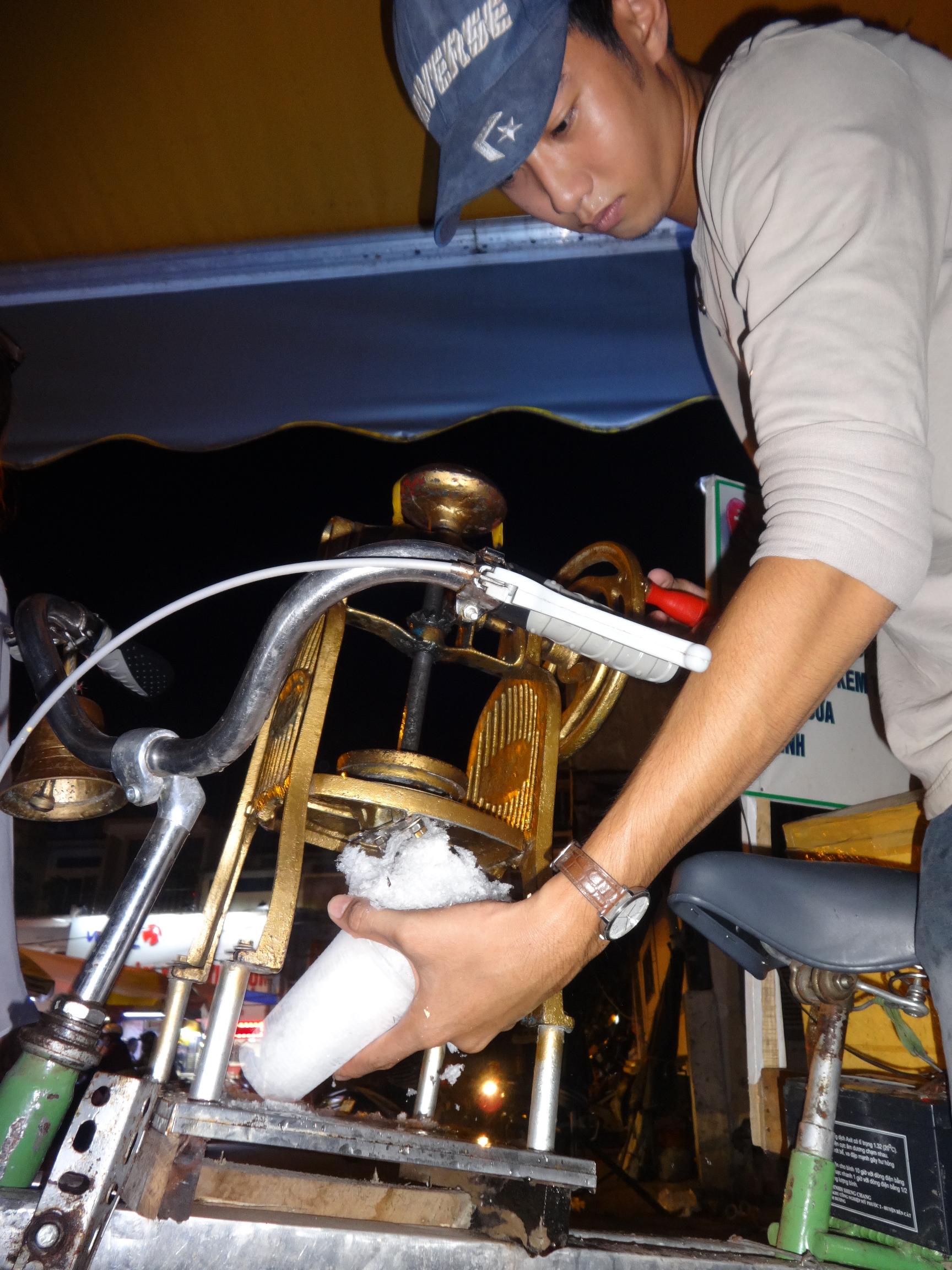 Cứ mỗi chiều tối muộn, khi đường lên đèn và người người lên đồ chuẩn bị cho một đêm nhộn nhịp nơi đô thị, tiếng chuông đá bào lại leng keng vang lên len lỏi qua các ngõ phố, con đường, tiếng xe đạp lộc cộc chạy loang quanh khắp nẻo để mưu sinh. "Hiện tại mình sẽ cố gắng vừa bán siro đá bào, vừa hoàn thành việc học thật tốt, để sau này trở thành một kỹ sư giám sát công trình, để xây dựng được nhiều công trình hiện đại cho Tổ quốc" – ánh mắt Hòa sáng rực niềm hy vọng. Trong ánh mắt hiền lành ấy chất chứa đầy hoài bão, ánh lên cái nhìn tự tin, yêu nghề và yêu đời. Đúng vậy, Hòa tự tin với đồng tiền do chính mình làm ra, không "e dè, xấu hổ", Hòa yêu nghề nên đã cho ra đời những cây đá bào "cách điệu" hình chim thú, hoa lá sống động, và Hòa yêu đời nên dù có mệt thế nào thì nụ cười hiền hòa vẫn luôn nở trên môi. Sau đêm dài mưu sinh, trở về phòng trọ, Hòa vẫn chưa thể đi ngủ, bài tập ở lớp vẫn còn chờ cậu.