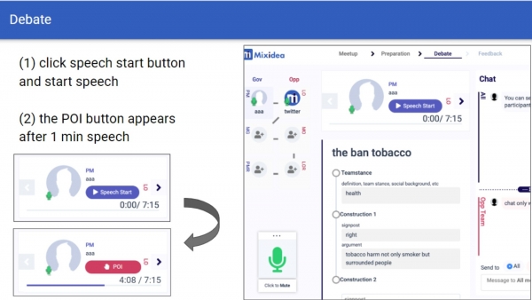 Cụ thể, trước thời gian thi chính thức, mỗi thí sinh đều được làm quen, chia đội và đọc tài liệu liên quan. Các thí sinh ở hai đội sẽ có 30 phút mở đề ở phòng chuẩn bị riêng (preparation room). Hết thời lượng cho phép, các đội sẽ tự động được chuyển vào phòng để tranh biện (debate room). Micro âm thanh hoàn toàn được tắt tiếng, chỉ khi đến lượt nói mới được bật. Thí sinh có tổng cộng 7 phút tham gia trình bày phản biện. Sau khi kết thúc các lượt nói, thí sinh sẽ được chuyển sang một phòng khác để nghe nhận xét (feedback room). Trước đó, giám khảo sẽ có khu vực riêng vào thảo luận với nhau. Điều này giúp cuộc thi dù diễn ra trực tuyến nhưng đảm bảo được tính công bằng cho người tham gia.