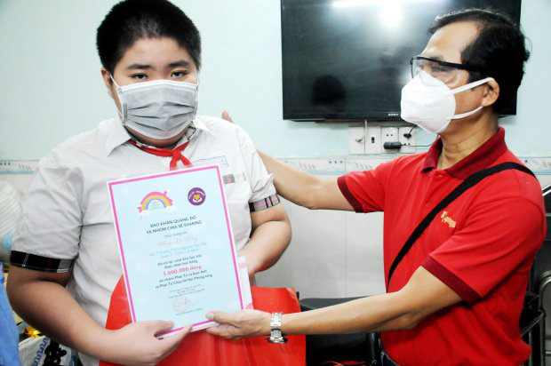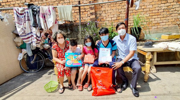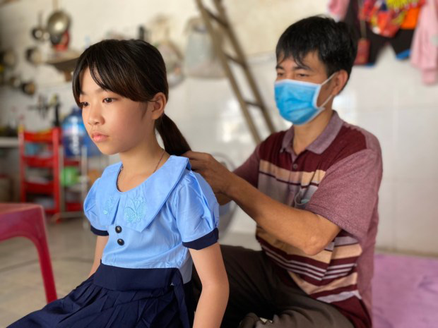 Dù đang bệnh nhưng ba của em Chung Ngọc Tiến (lớp 8A5, trường THCS Bình Đông, quận 8) vẫn cố gắng làm phụ hồ để lo cho em và bà nội già yếu cùng người bác bệnh tâm thần. Mẹ của Tiến đã qua đời vì Covid-19. Học bổng của chương trình đã giúp gia đình Tiến giảm đi phần nào gánh nặng kinh tế vào thời điểm này.