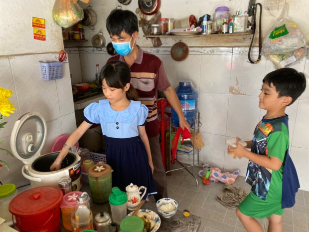 Trước đây mẹ và ba của em P.L.H (quận 7) đều là nhân viên làm chung siêu thị. Mẹ đã mất vì Covid-19, những ngày qua ba phải một mình đi làm lo cho em và cả ông bà nội đã rất già yếu.