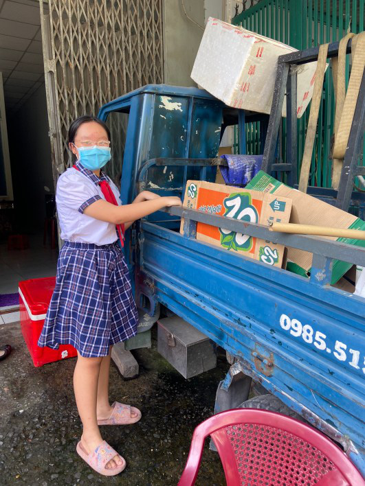 Từ quê Bến Tre, em Võ Thị Ngọc Ngân (lớp 6/6, trường THCS Bùi Văn Thủ, huyện Hóc Môn) theo gia đình lên thành phố mưu sinh, ba em không may mất vì Covid. Mẹ trở thành lao động chính, bán quán nước xung quanh nhà trọ nhưng thu nhập chẳng đủ để lo cho em, vì vậy gia đình vẫn phụ thuộc hoàn toàn vào trợ cấp của địa phương.