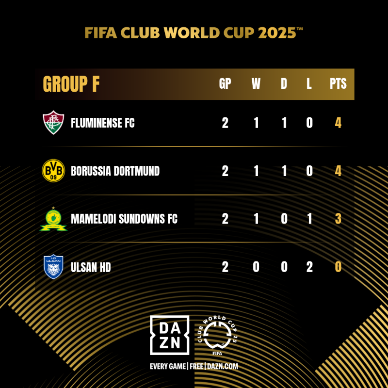Trong trường hợp chỉ giành 1 điểm trước Fluminense, Sundowns cần phải hy vọng Borussia Dortmund thua đậm trước Ulsan Hyundai - kịch bản này khó xảy ra bởi Dortmund vượt trội hoàn toàn đối thủ Hàn Quốc.