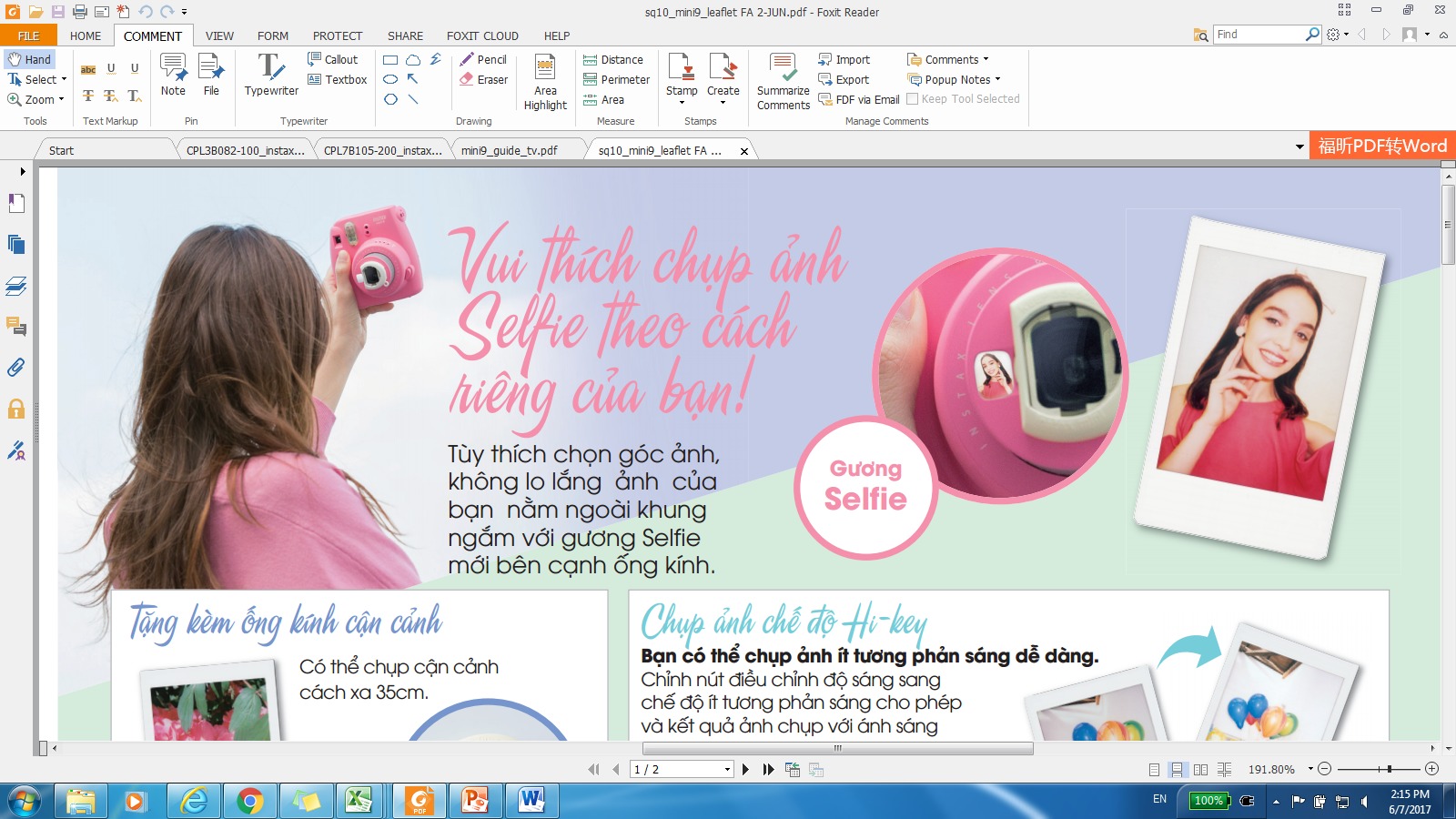 TP. Hồ Chí Minh, 24 tháng 6 năm 2017 - FUJIFILM Việt Nam tự hào giới thiệu hai chiếc máy chụp ảnh lấy ngay, đó là máy ảnh instax SQUARE SQ10 (SQ10) và instax mini 9. Phiên bản SQ10 được giới thiệu với chủ đề The New Shape of Creativity – Hình dạng sáng tạo mới. Máy ảnh chụp lấy ngay hybrid instax SQ10 với tấm phim định dạng hình vuông mới (SQUARE Film) là chiếc máy ảnh lai đầu tiên trong dòng máy instax được trang bị bộ cảm biến hình ảnh kỹ thuật số và công nghệ xử lý hình ảnh kỹ thuật số, cho phép người sử dụng cải thiện chất lượng ảnh và chỉnh sửa / xử lý ảnh trước khi in.