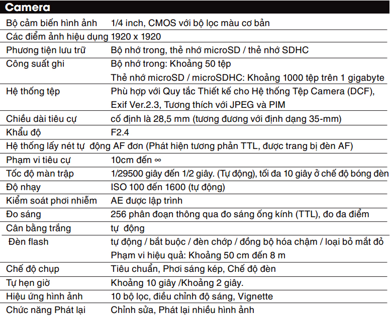 Được trang bị khe cắm thẻ nhớ microSD (hình ảnh cũng có thể được in ở định dạng JPEG)