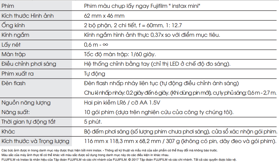 1. Thông số kỹ thuật instax SQUARE SQ10