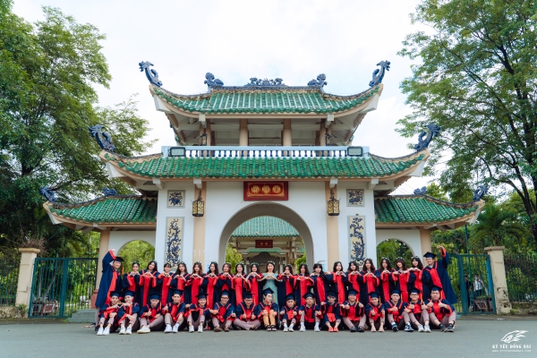Kim Bảo và bạn bè không quên ghi lại khoảnh khắc thanh xuân tại Văn miếu Trấn Biên, TP. Biên Hoà. Ảnh: bạn Kim Bảo cung cấp