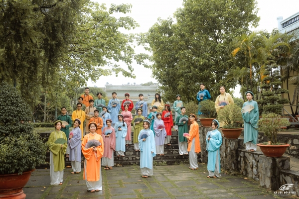 Các bạn học sinh thướt tha trong tà áo dài truyền thống. Ảnh: bạn Kim Bảo cung cấp