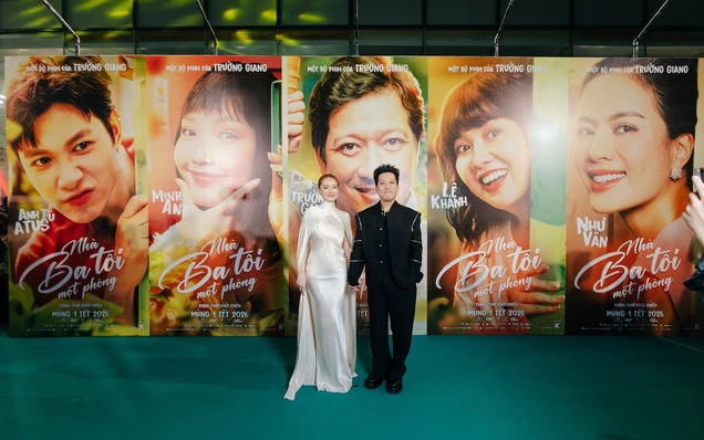 Khoảnh khắc Trường Giang thể hiện tình cảm dành cho bà xã Nhã Phương gây sốt thảm đỏ ra mắt phim Nhà ba tôi một phòng.