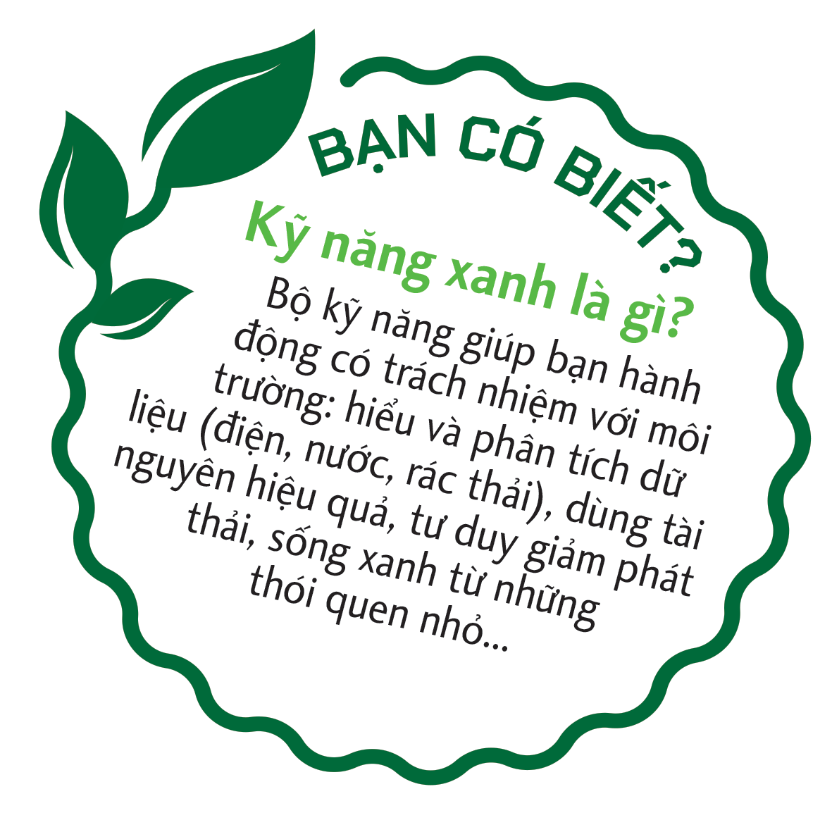 Không chỉ là kiến thức về môi trường, kỹ năng xanh còn bao gồm khả năng sử dụng tài nguyên hiệu quả, tư duy giảm phát thải và thái độ sống có trách nhiệm với thiên nhiên... “Điều này giúp người trẻ thích ứng với bối cảnh toàn cầu, khi phát triển bền vững đã trở thành tiêu chí bắt buộc trong nhiều lĩnh vực”, Hải nói.