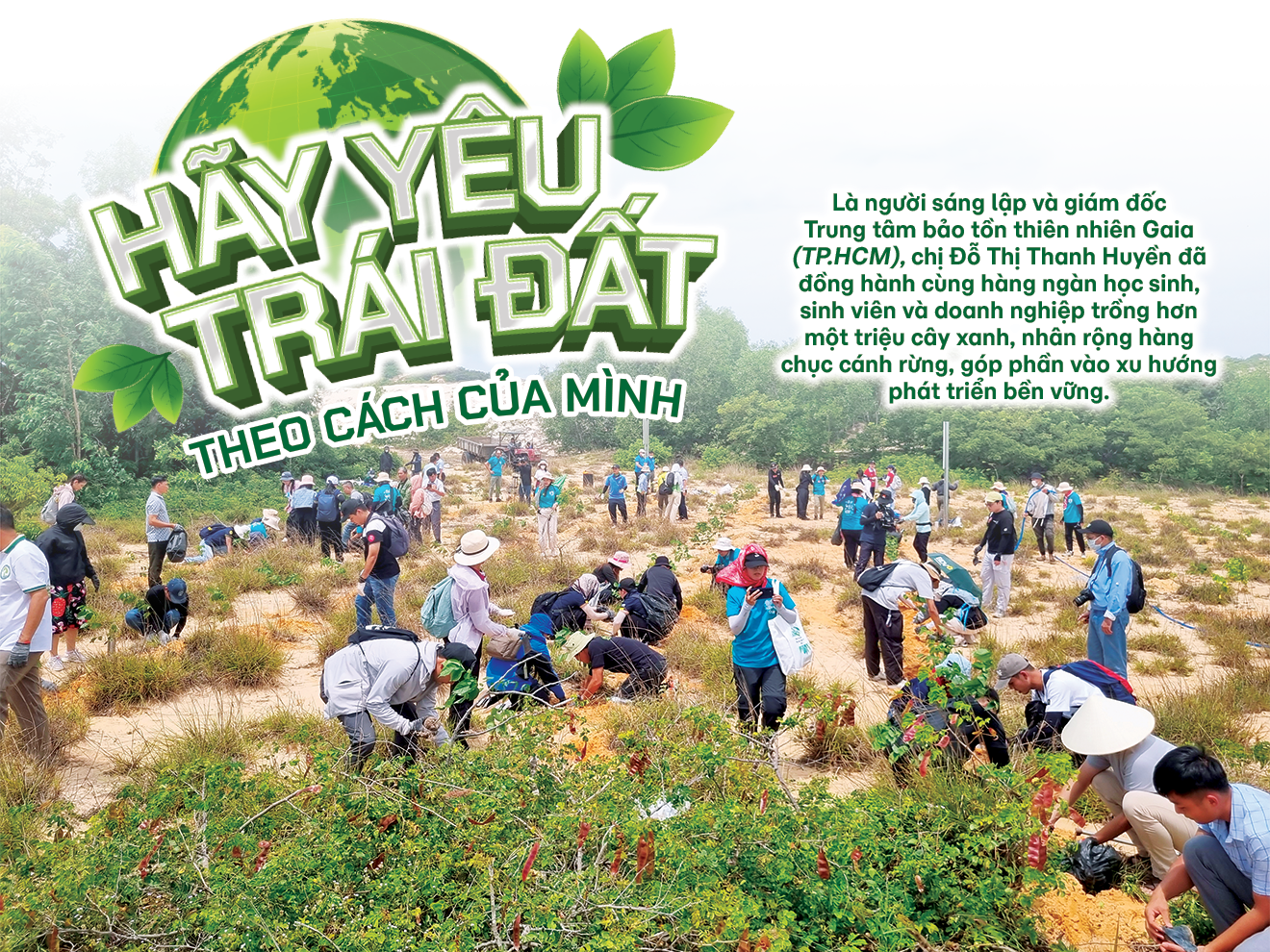 Hiện Gaia có đội ngũ 50 cộng tác viên là những bạn trẻ từ 18 đến 30 tuổi. Họ đến từ nhiều lĩnh vực nhưng đều yêu thiên nhiên. Nhiều bạn còn kêu gọi công ty mình đang làm việc hãy tham gia trồng rừng cùng Gaia. Tôi tin thế hệ trẻ Việt Nam đang hình thành một “làn sóng xanh” mới trong lối sống.