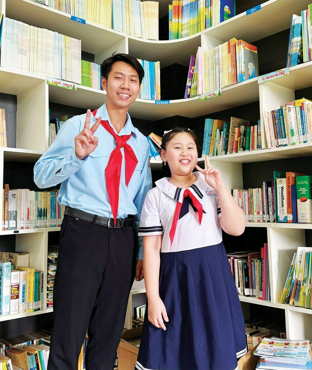 Thầy Phúc Thịnh và Liên đội trưởng Thanh Trúc - Ảnh: THÚY HẰNG