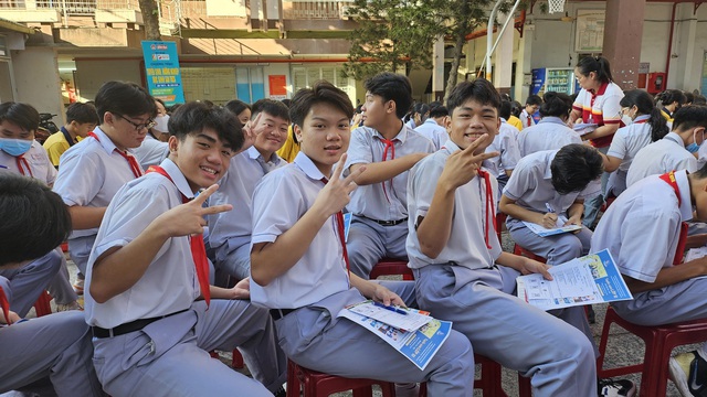 Các bạn Trường THCS Lý Thường Kiệt (quận Tân Bình) tham gia chương trình tư vấn tuyển sinh, hướng nghiệp năm 2024 - ẢNH: NHÀ TRƯỜNG CUNG CẤP.