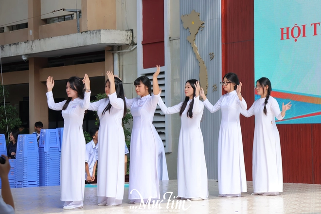Các tiết mục trình diễn với trang phục áo dài nữ sinh - Ảnh: THẢO NGỌC