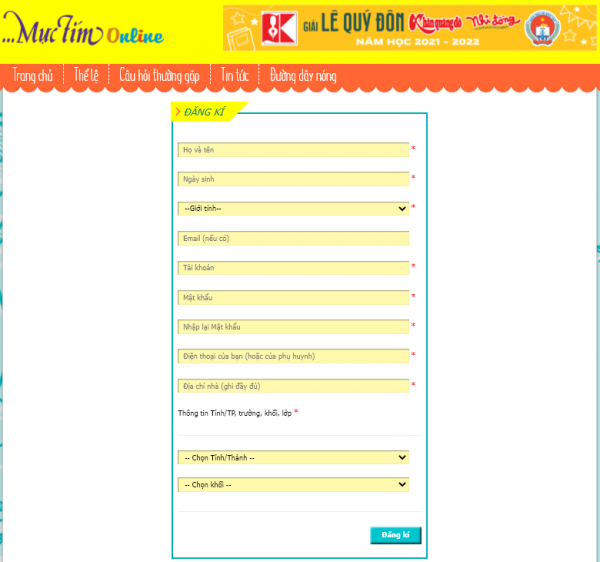 Nếu chưa đăng kí tài khoản, bạn hãy chọn ô đăng kí và điền thông tin theo mẫu. Đây là toàn bộ những thông tin bạn cần điền. Lưu ý, những mục có đánh dấu sao màu đỏ là bắt buộc, bạn phải điền đầy đủ.