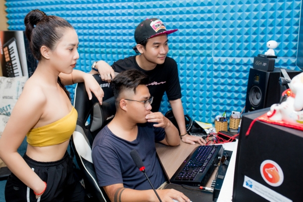 Hà Thanh Phúc (đội nón) và Hương Tràm (áo trắng)