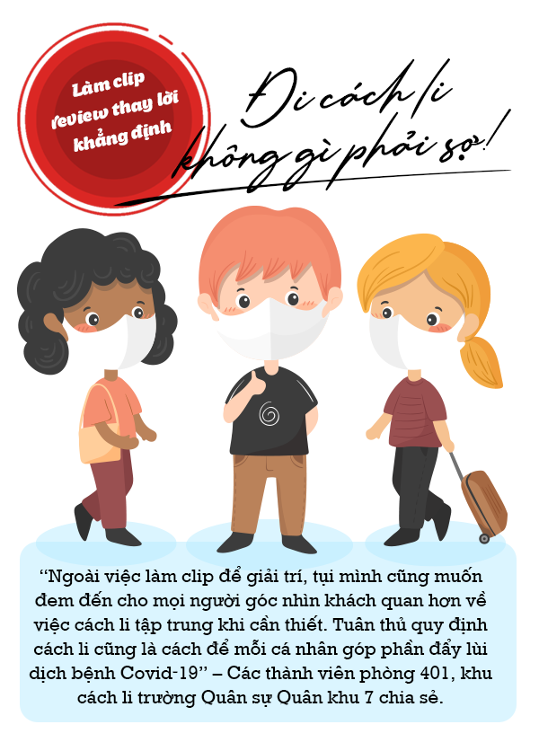 Bạn Trần Ngọc Minh Quang (du học sinh Pháp) chia sẻ: "Trong thời gian cách li tập trung tại trường Quân sự Quân Khu 7, tụi mình nhận thấy bầu không khí nơi đây lúc đầu hơi căng thẳng do thông tin bệnh dịch tràn lan. Vì vậy, tụi mình muốn cùng nhau truyền tải những năng lượng tích cực để mọi người có cái nhìn thực tế hơn về dịch bệnh và hiểu hơn về việc cách li tập trung khi cần thiết không có gì phải sợ. Dù đã có ý tưởng như vậy nhưng cả nhóm chưa biết sẽ phải bắt đầu từ đâu và thực hiện như thế nào. Sau một thời gian suy nghĩ, các thành viên phòng 401 đã nảy ra ý tưởng làm clip hài để có thể đáp ứng được với tiêu chí giảm bớt căng thẳng, giúp mọi người vui vẻ hơn khi xem clip".