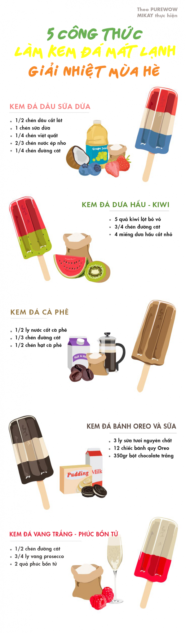 Dưới đây là 5 công thức bạn có thể tham khảo cho món kem đá siêu mát lạnh nè!