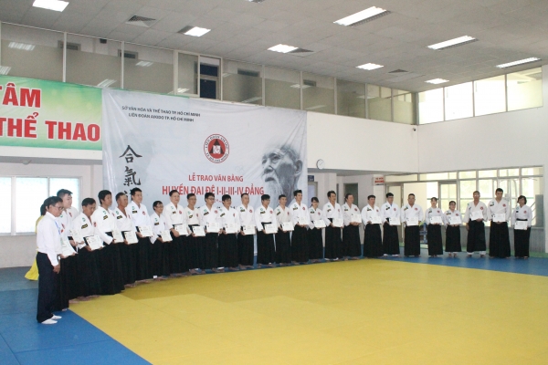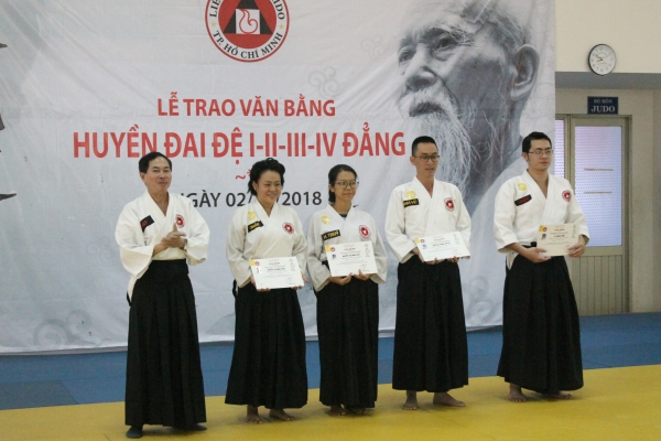Được biết trong thời gian từ ngày 1/7 đến 14/10/2018 Liên Đoàn Aikido TP.HCM đã tiến hành các đợt tập huấn tập trung cho Huyền đai các cấp Nhất, Nhị, Tam và Tứ đẳng với 13 buổi tập huấn và thi kiểm tra, quy tụ khoảng 200 học viên trong địa bàn thành phố tham gia. Và ngày 2/12/2018 Ban tổ chức lễ đã long trọng công bố kết quả kì thi kiểm tra thăng đẳng Huyền đai các cấp Nhất, Nhị, Tam và Tứ đẳng năm 2018 cho các học viên tham gia khóa tập huấn vừa qua.