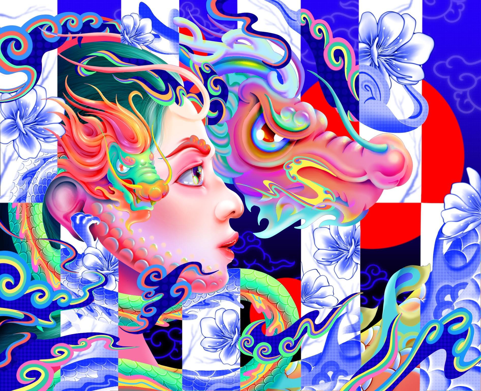 Tranh vẽ con rồng được các hoạ sĩ trẻ lấy cảm hứng từ truyền thuyết, văn hoá, phim ảnh, truyện tranh hoặc chính đời sống hằng ngày - Ảnh: VIETNAM LOCAL ARTIST GROUP