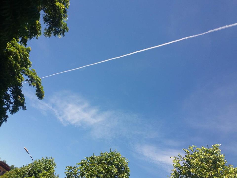 Bầu trời khi có máy bay đi ngang qua.