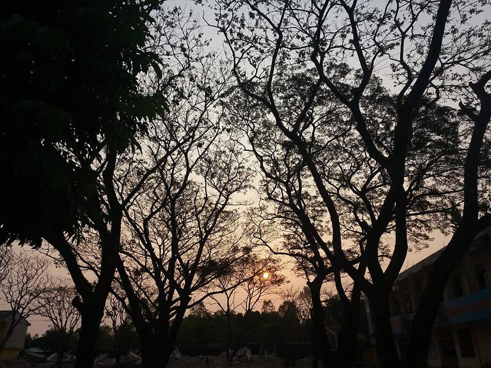 Hoàng hôn lặng sau những bóng cây.