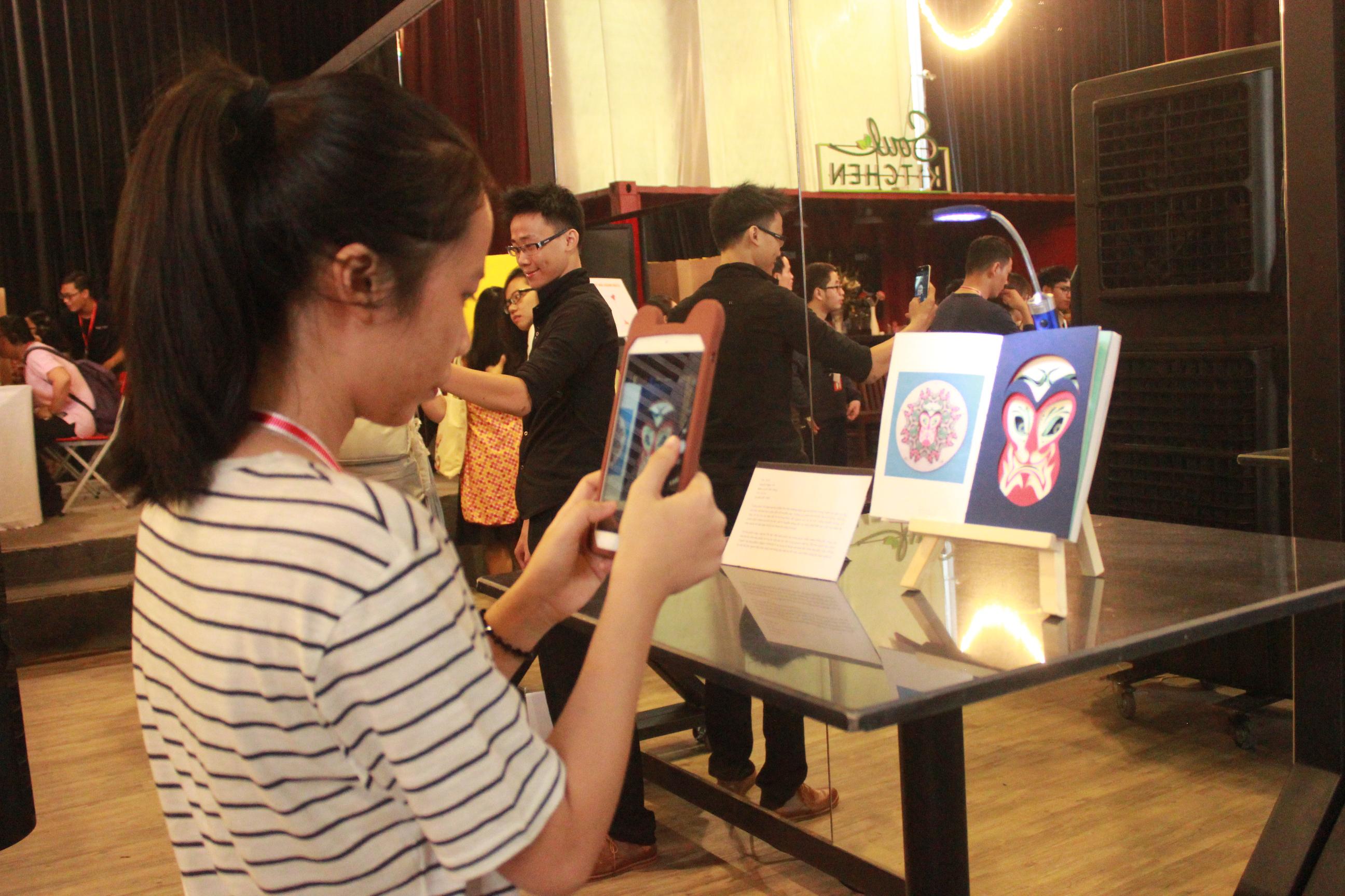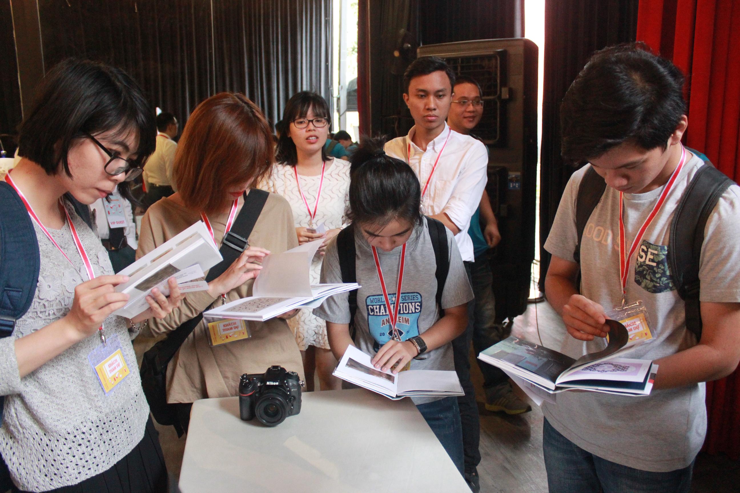Bạn trẻ say mê xem quyển Saigon Art Book - Sáng kiến của anh Đặng Thành Long.