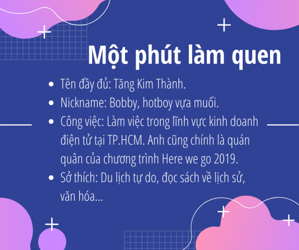 - Nói về dự định cho du lịch rất nhiều, nhưng cụ thể tôi sẽ kết hợp du lịch bản sắc văn hóa Việt Nam với một số lĩnh vực khác, như Anh văn chẳng hạn. Tôi hi vọng mình sẽ tạo được ảnh hưởng tích cực lên cộng đồng quốc tế nhiều hơn. Tôi cũng mong dự định này giúp tôi định hình hướng đi riêng cho bản thân.