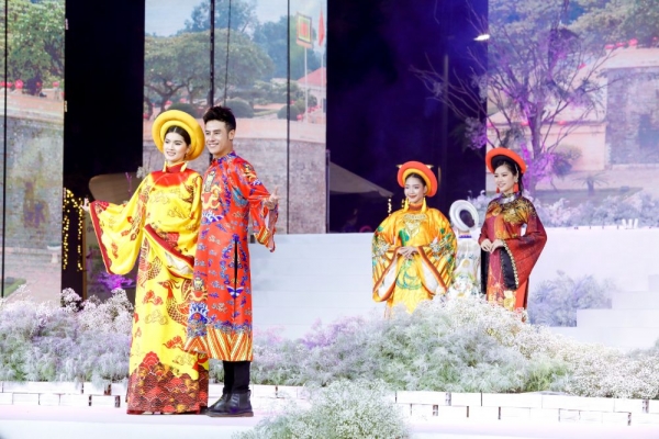 Hơn 100 nghệ sĩ danh tiếng gồm nhiều gương mặt hoa hậu, ca sĩ, diễn viên, người mẫu đã sải bước trên sàn catwalk trên sân khấu với hơn 300 chiếc Áo dài mang thông điệp “Dấu xưa”, “Tôi yêu áo dài Việt Nam” và “Thành phố thông minh” của Nhà thiết kế Việt Hùng.