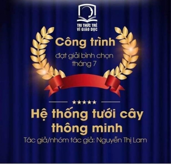Với sự sáng tạo cũng như công dụng hữu ích mà “Hệ thống tưới nước thông minh” đã mang lại, trong chương trình “Tri thức trẻ vì giáo dục” năm 2021 - 2022 vừa qua, nữ sinh 2k4 đã nhận được giải bình chọn tháng 7 với phần thưởng là 2 triệu đồng tiền mặt, đồng thời là sản phẩm được BTC chương trình lựa chọn bước vào vòng tranh tài tiếp theo.