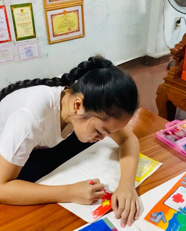 Nghi tập vẽ tại nhà.