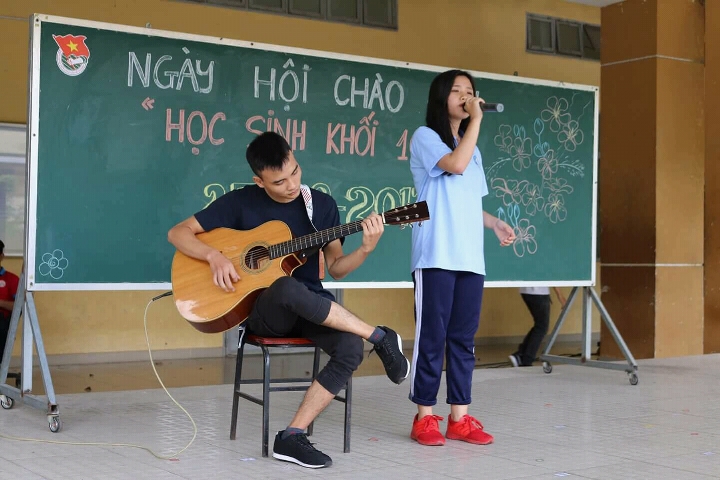 Để mở đầu ngày hội, thầy hiệu phó cùng hai thầy cô trợ lý thanh niên đã lên sân khấu tuyên bố khai mạc với những lời động viên khích lệ tinh thần các em học sinh mới.